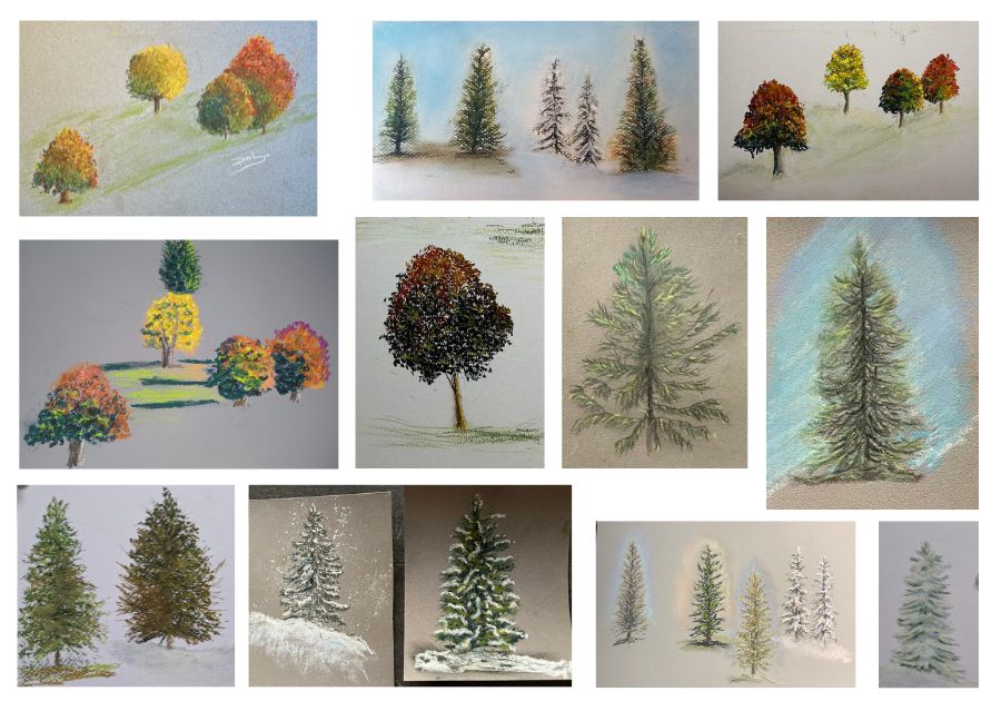 Monthly projects where we draw then pastel a complete pastel painting.